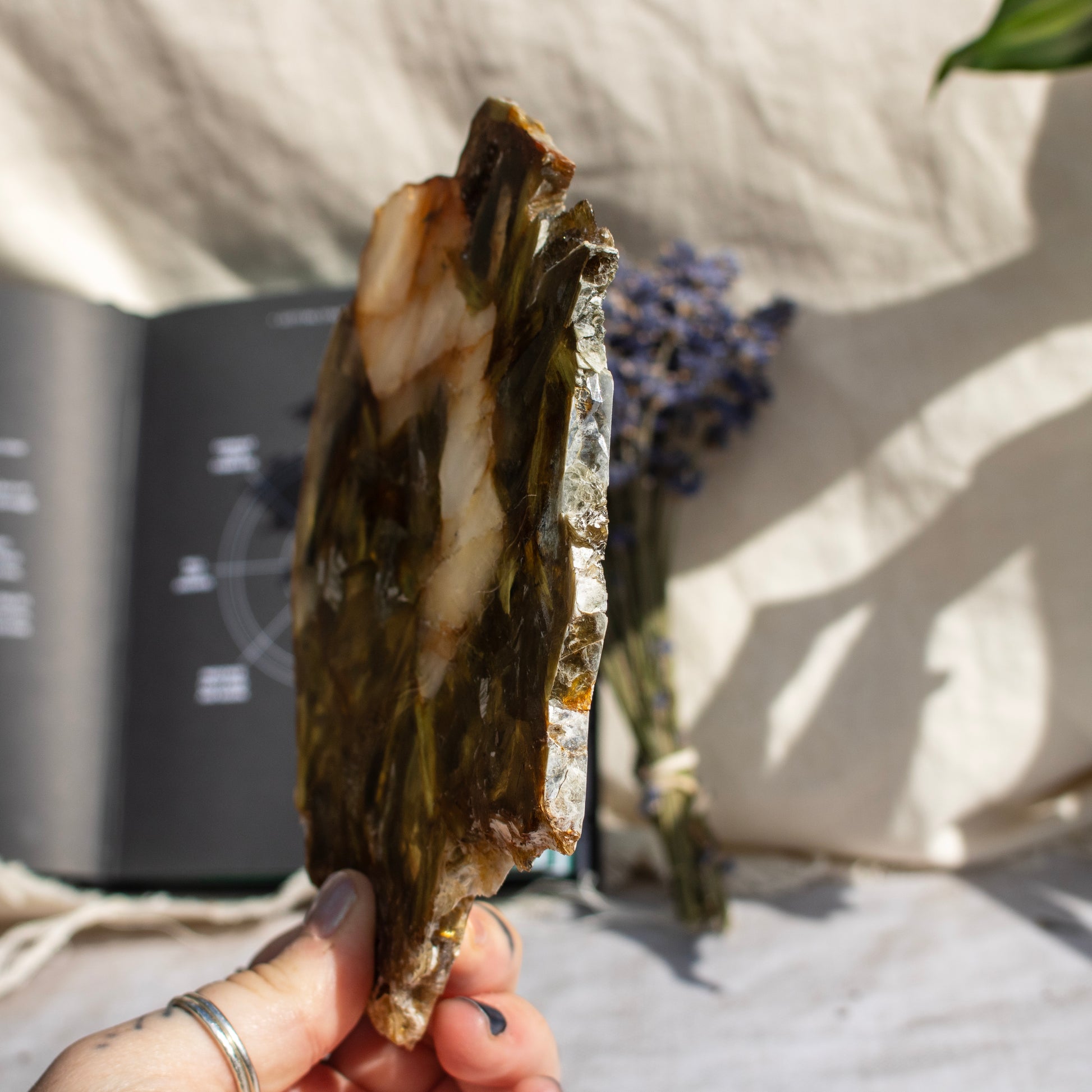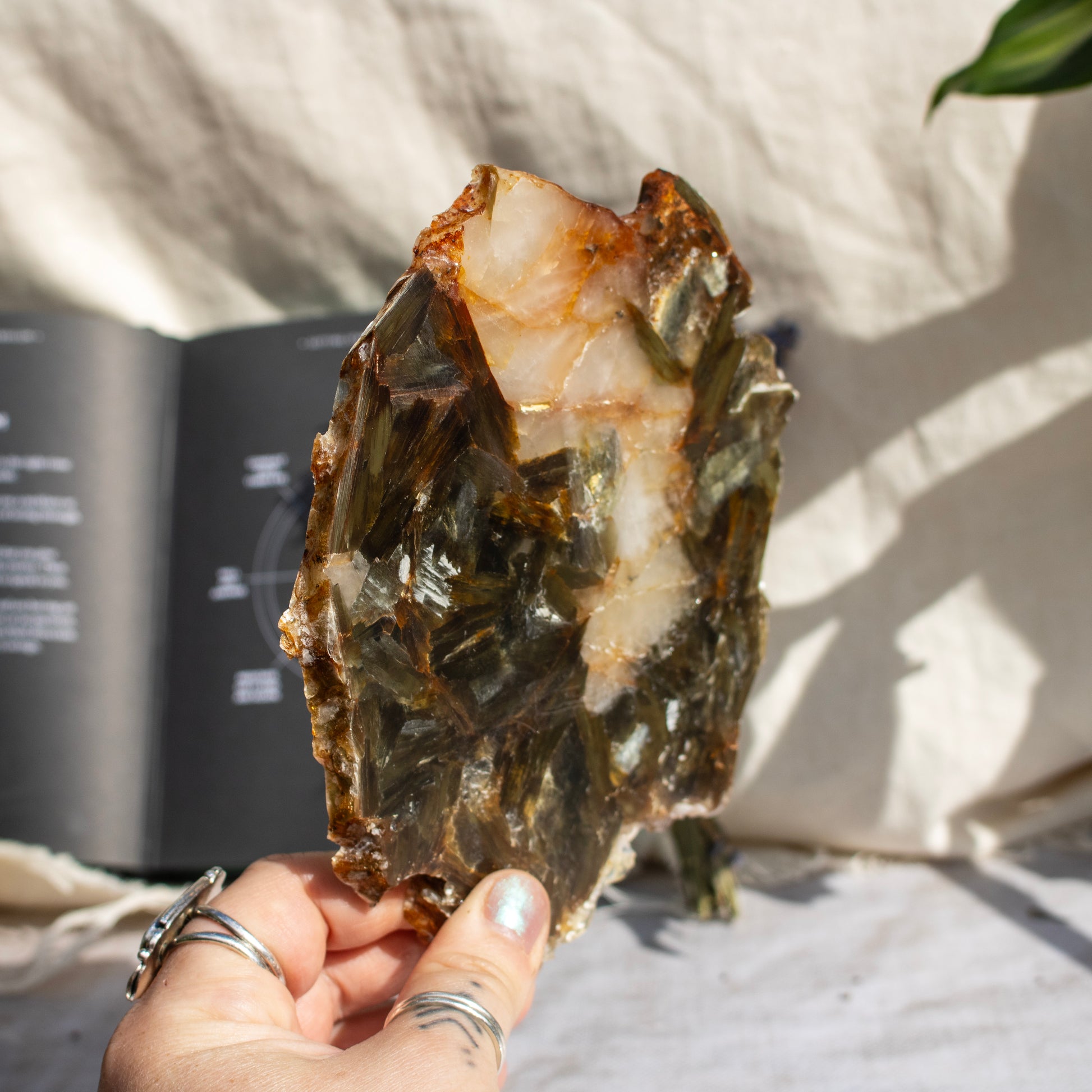 This one-of-a-kind piece glows with warm golden tones and subtle translucence when light passes through, making it a beautiful addition to any altar, shelf, or crystal display.