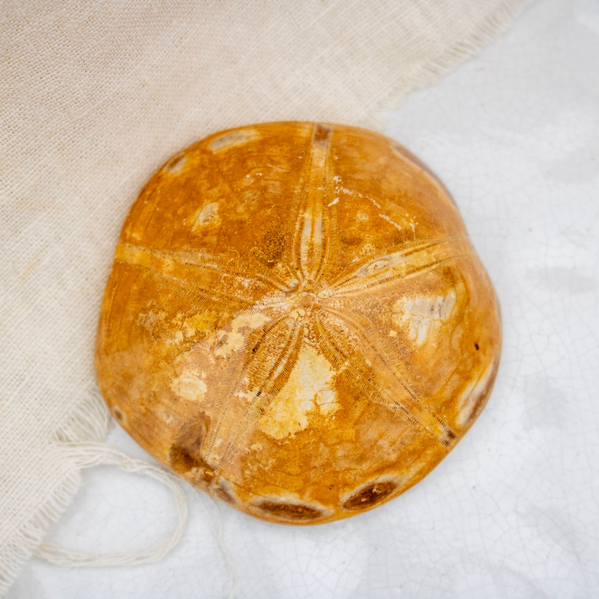 Add a beautiful piece of ancient ocean history to your collection with this fossilised sand dollar. Originating from prehistoric seabeds, this specimen has been preserved and carefully coated with a clear protective lacquer to enhance its natural detail and give it a subtle glossy finish.